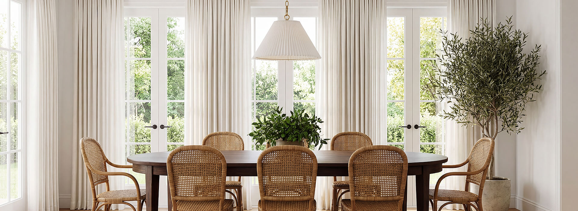 In homes with an open-plan design, dining room curtains can act as gentle partitions, helping to define the dining space and provide added flexibility and privacy.