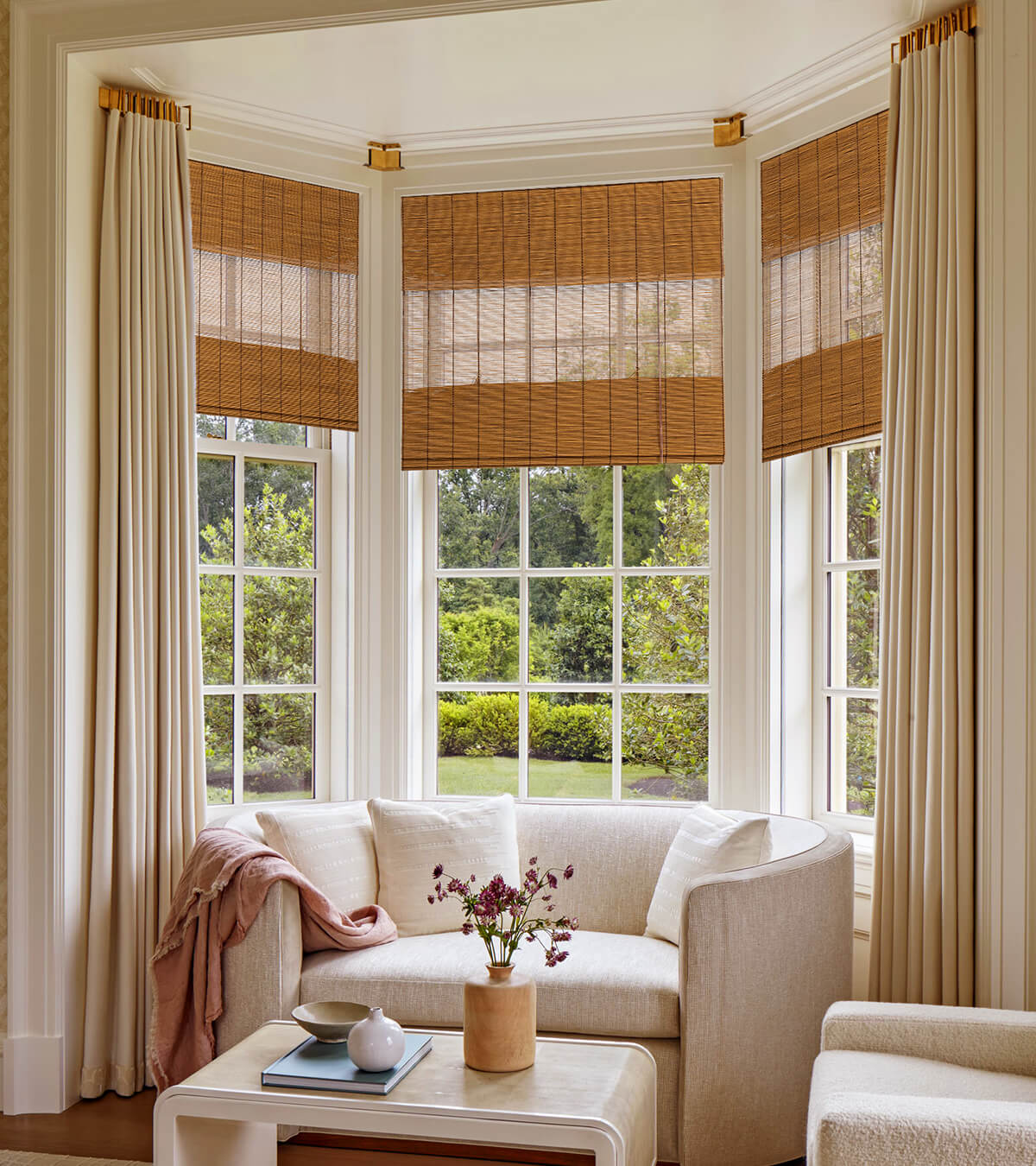 Soft Light and Eye Protection: Bamboo blinds gently filter sunlight, reducing glare and protecting sensitive eyes for a cozy atmosphere.