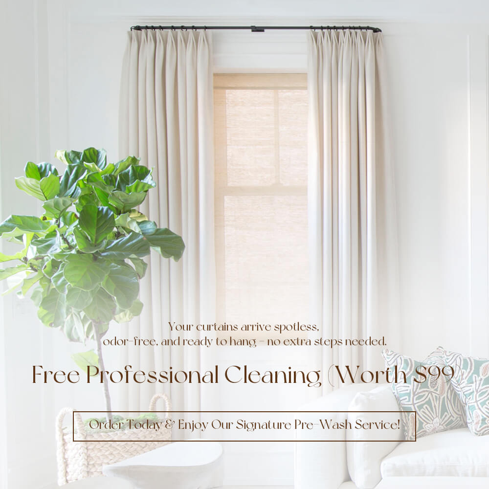 If you choose our Healthy Curtain Cleaning Service, your curtains will be pre-washed and treated before production. This helps lock in the final size and shape, so you won’t have to worry about shrinkage after future washes. Your curtains will maintain their beautiful drape and fit right out of the box—and stay that way.