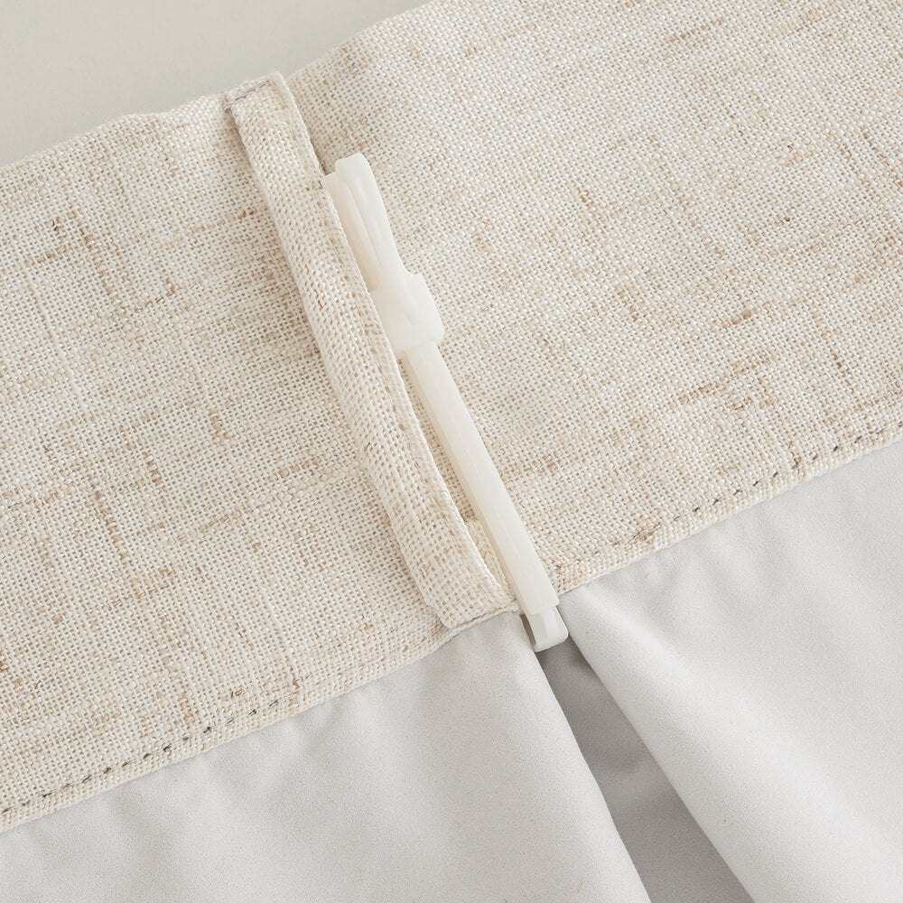 We've already atached every hook by hand, so your curtains arive ready to hang.A smal detalthat saves you time - because efortless beauty should be truly efortiess.