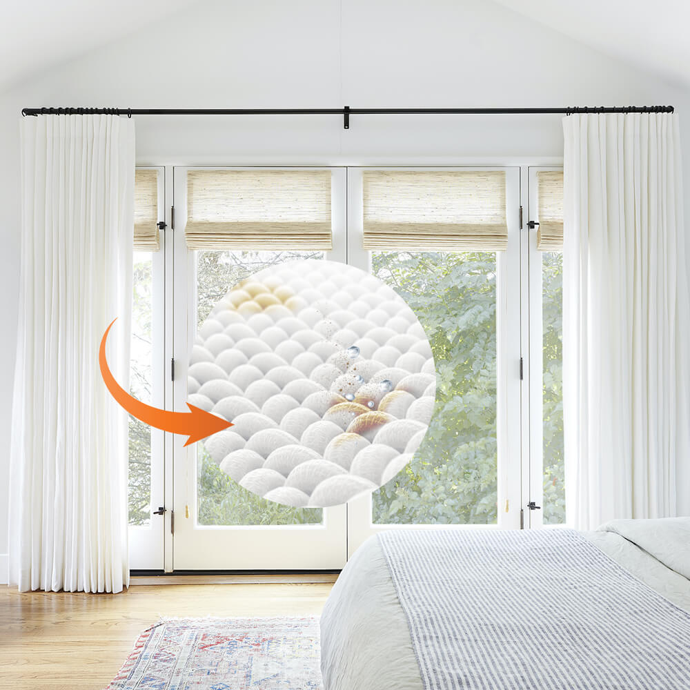 Our curtains use memory-setting technology to maintain perfect folds and smooth drapes, creating an elegant, ful-bodied silhouete that exudes luxury.